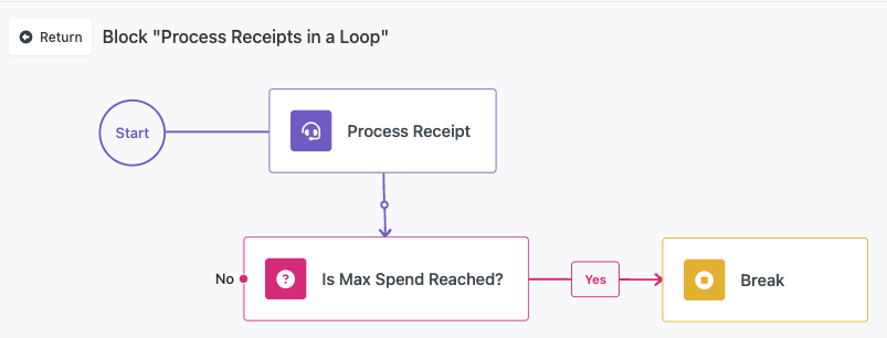 Within the List Iterator's internal flow, you can use a Break block to exit the loop early based on specific conditions. This allows you to implement scenarios where you only need to process items until a certain condition is met.